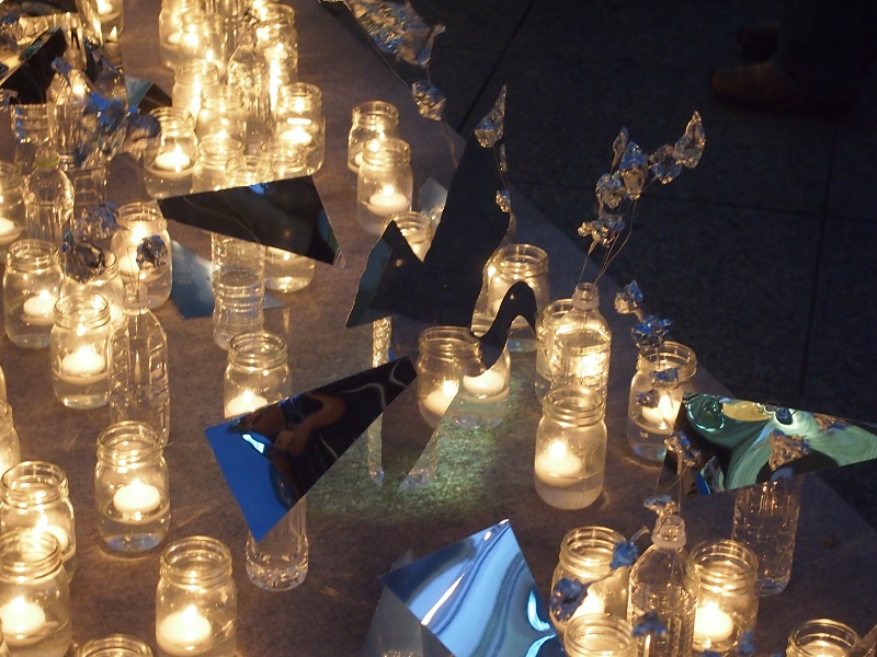 風が吹くとゆらゆらと揺れ、キャンドルの灯りを乱反射する演出となってました。