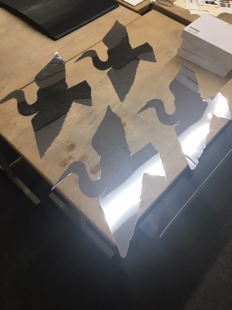 製作の過程で、この鳥の形にカットしたミラーの写真をメールに添付して送ってくれてました。
