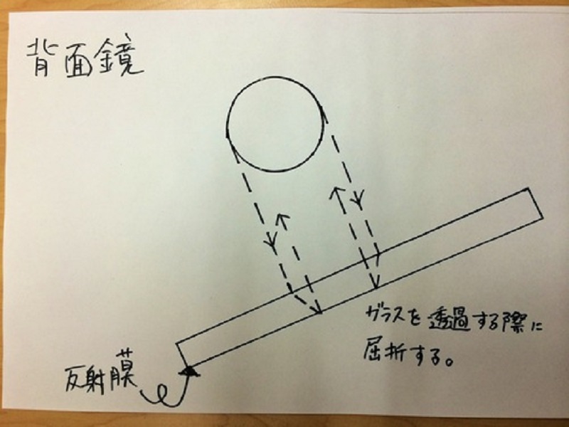 背面鏡で作られたガラス鏡は実は屈折により小さく見えているという事実。