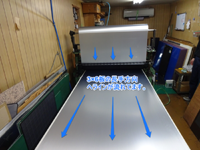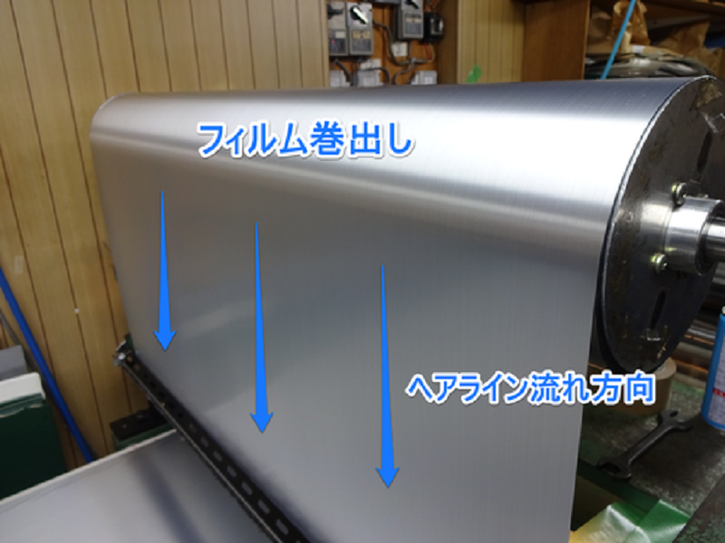 前項で、弊社の場合はプラスチックフィルムにヘアライン処理をすると書きました。