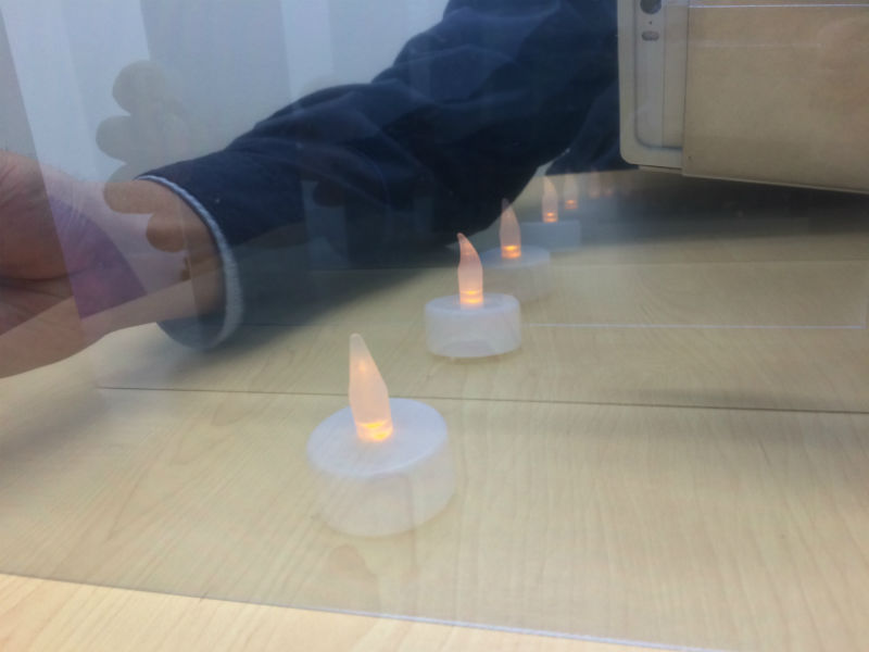 例えば弊社のハーフミラーは光を18%透過します。(光線透過率)