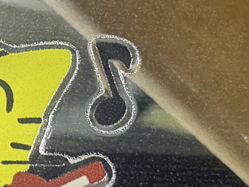 以下の写真は、少々特殊な事例ではありますが透明メディアに対しUVインクジェットで裏刷りをしたうえでその印刷面にミラーフィルムを上貼りテストをしたのもになります。