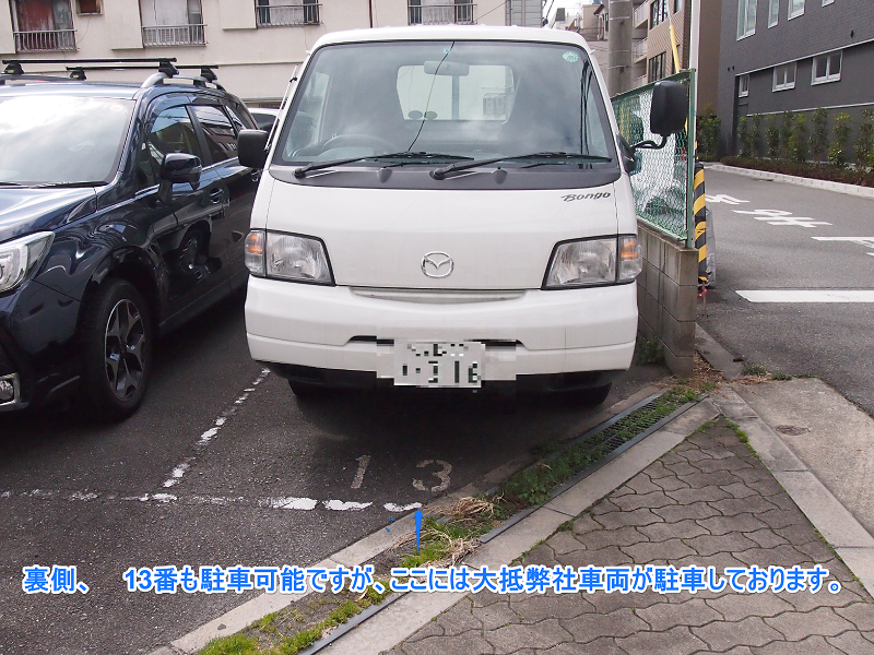 但し、13番には弊社車両が駐車しておりますのでご注意願います。