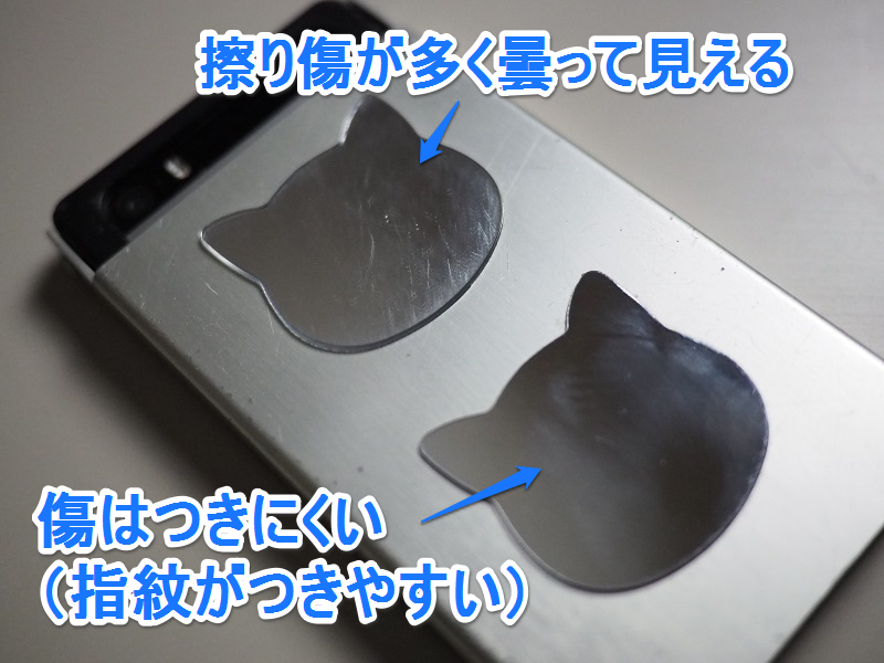 少々極端ではありますが、今回はこの2種類での擦過性、要は傷の入り具合を比較検証したいと思います。