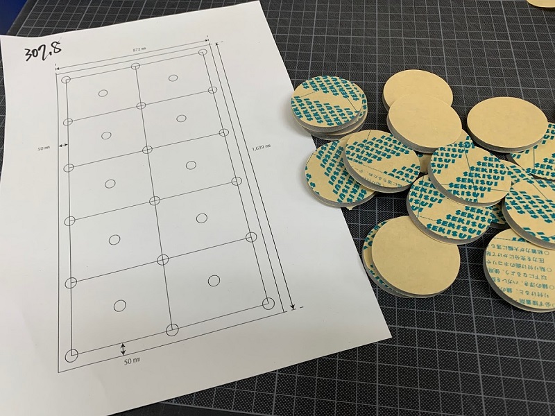 元のサイズは450×1,000㎜のシート状ですが、弊社ではこれを47Φの丸型に打抜いて使用しております。
