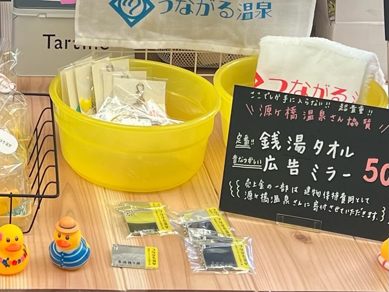 イベントでは銭湯としては日本初である国の有形文化財として登録された源ヶ橋温泉(現在は廃業・閉館されております。)の特別公開が目玉で、それにちなんだ銭湯グッズを販売されるのが「つながる温泉」様でした。