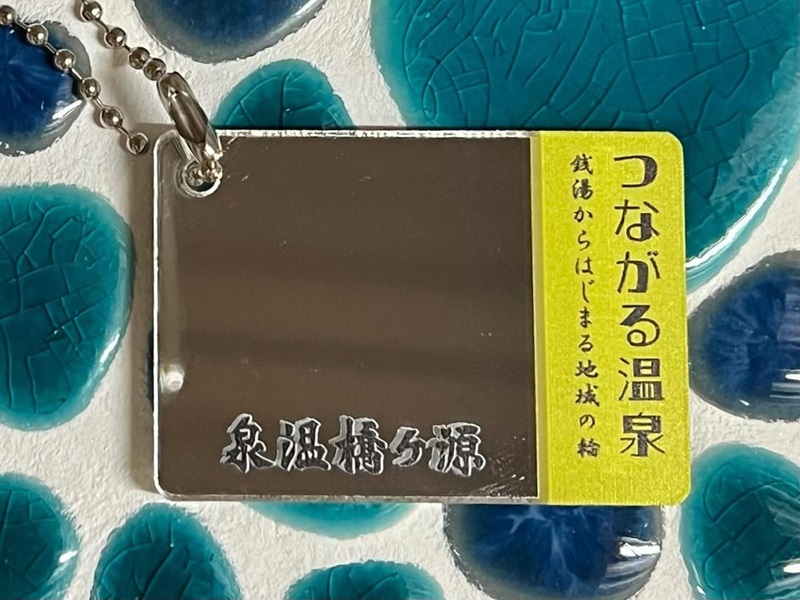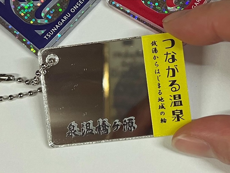 それとミラーフィルムを裏貼り(バックサイド)し、銭湯における広告ミラーを意識した銭湯広告ミラー型のキーホルダーです。