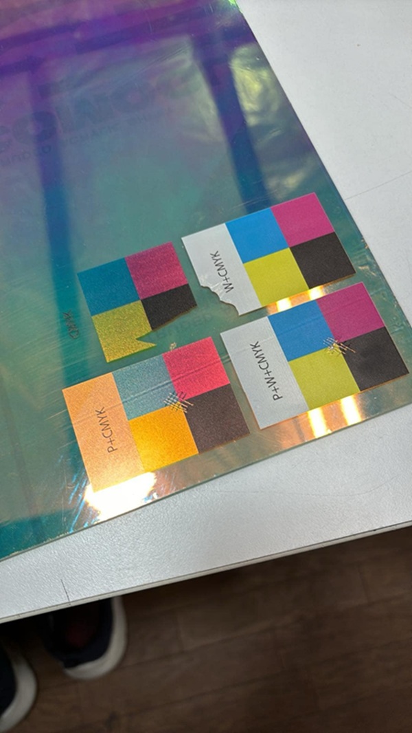 フィルム自体はPETなので問題ないかと思いましたが、インクジェット機器やインクとの相性もありますので一度確かめてみる事に。