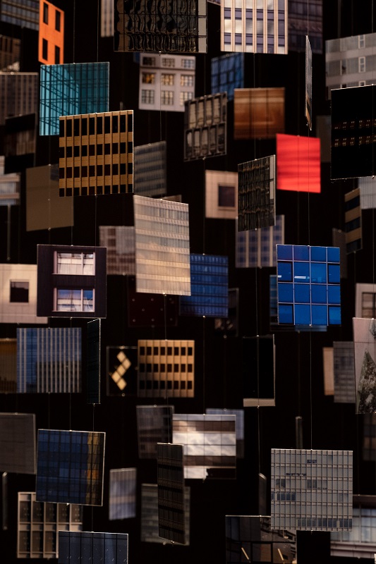 丸の内、有楽町、表参道などの主な街区で撮影したビルの写真を構成し、それらの集合体を生み出した。