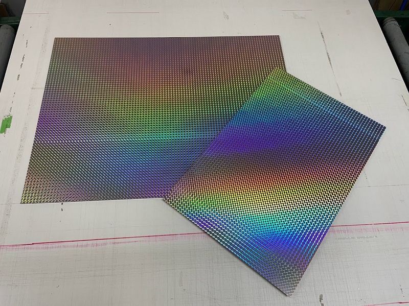 写真からは確認し辛いと思いますが、広幅と同様ホログラムの柄パターンの継目(版の継目)が点在します。