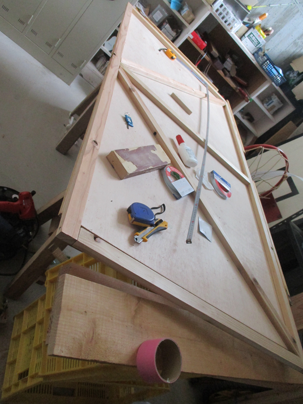 去年は歪みを楽しむ構成だったけど、 今年は 角材の枠+薄い合板の上にミラーを貼る構造に改良されたもん。
