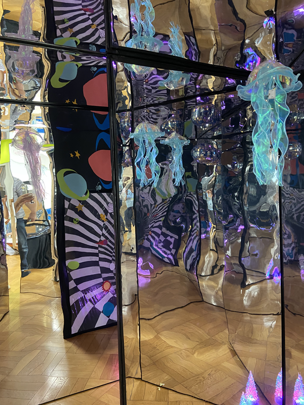 さらにね、 天井にもミラーを設置して、 空間全体をミラーで覆う構成になっているもん。